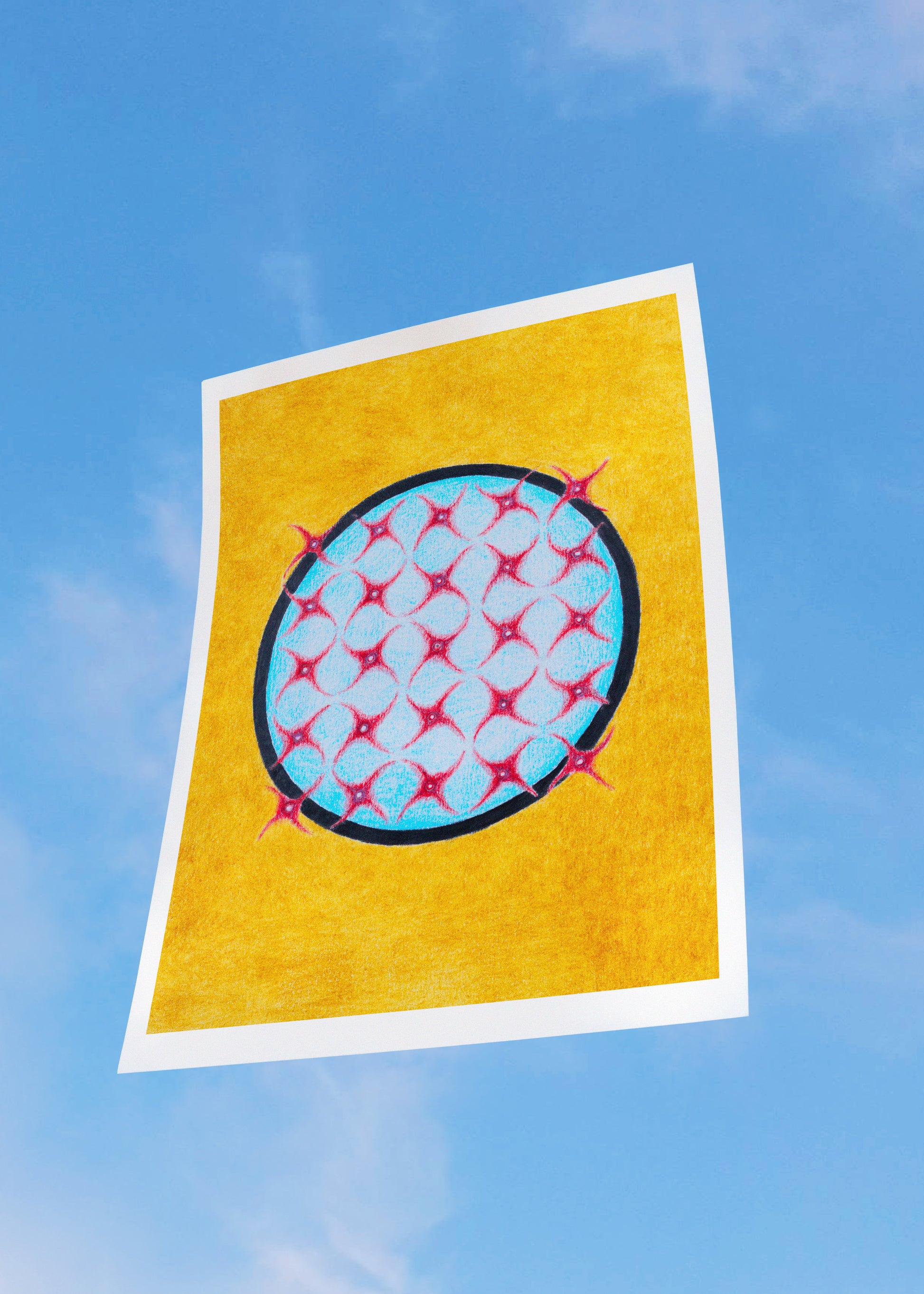 Cymara is a bright and playful artwork that captures the feeling of energy breaking through. Its rhythmic shapes and glowing contrasts create a sense of movement and expansion, like a spark pushing past its limits. Printed on luxurious and sustainable high-quality paper.